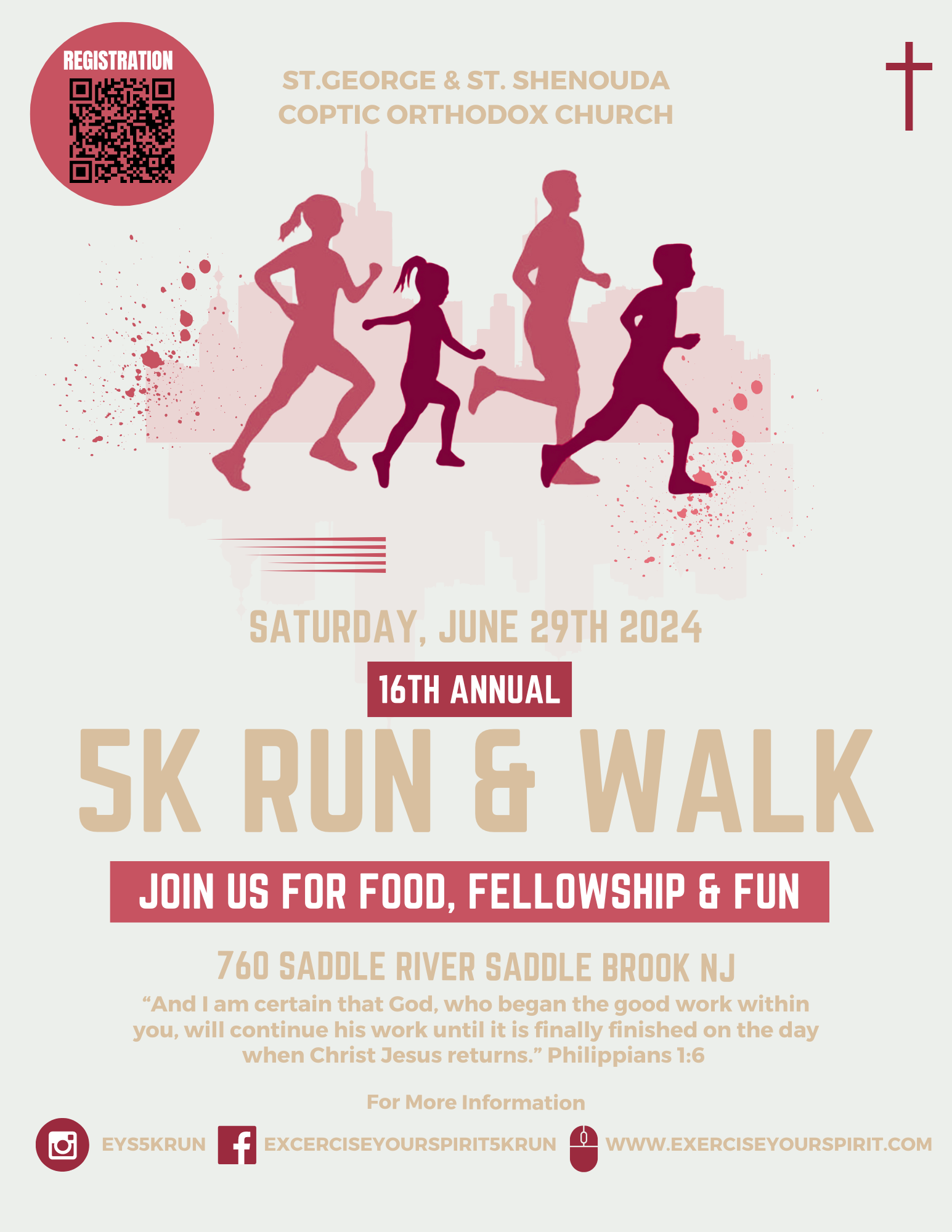 The Annual 5k Run will be taking place at Saddle River County Park on June 29th, registration starts at 8 am and the race starts at 9. Register at www.exerciseyourspirit.org.