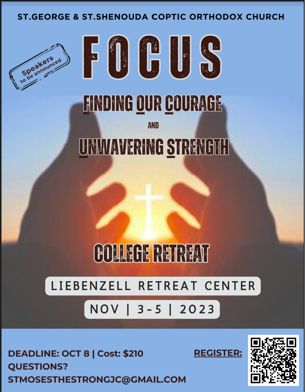 College and Grad Retreats Posted on October 8, 2023 Please see the flyers below for information on the upcoming college and grad retreats. To register for the college retreat, scan the QR code or click here, and for the grad retreat, here. Share this: Click to share on Facebook (Opens in new window) Facebook Click to share on X (Opens in new window) X Click to share on WhatsApp (Opens in new window) WhatsApp Click to share on LinkedIn (Opens in new window) LinkedIn Click to print (Opens in new window) Print Like this:Like Loading...